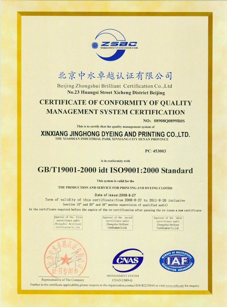 質(zhì)量管理體系認(rèn)證證書(英文)